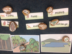 I read the story in both German and English, focussing on key vocabulary. We then retold the story entirely in German utilising story stones. The class was very engaged, excited to use the stones. I made the stones by simply sticking images from the twinkl website to rocks and covering them in glue.