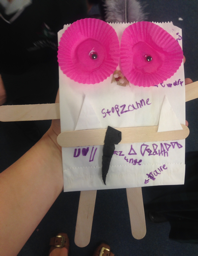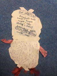 We then discussed the features of the Gruffalo, naming them in German. To cement this vocabulary the students created their own Gruffallo using a variety of materials. I consciously decided not to print off a Gruffalo image for the children to colour, rather they created their own version with the Gruffallo features. This encouraged creativity and brought the focus back to the vocabulary. To complete students scribed which features their creation included.