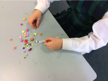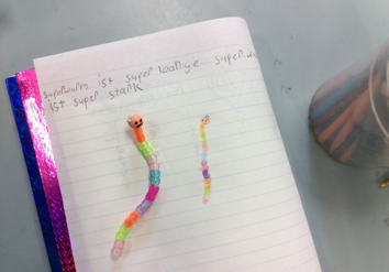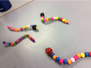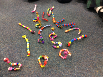 Using the found worms we created our own superwurms. The students were able to use any beads or buttons at their disposal. Their creations were outstanding.