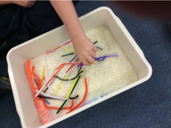 The very engaged students developed fine motor skills, patterning and as they created their wurms I asked them to narrate to a partner ; ‘Meine wurm ist rot und gelb’.