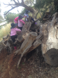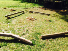 – a climbing frame of old tree trunks which is also sometimes some cars…or rockets…or whatever!