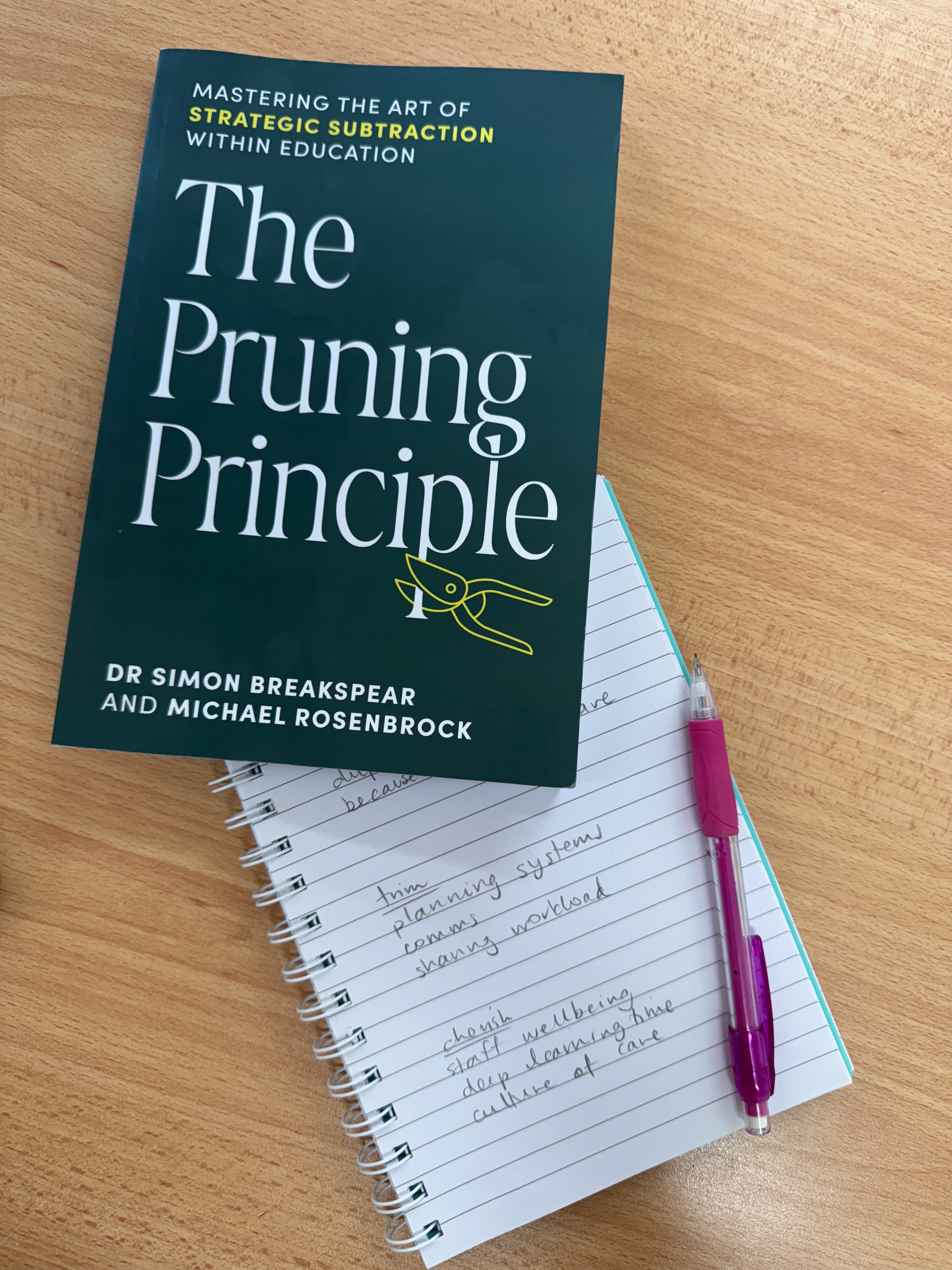 When our business manager handed me a copy of The Pruning Principle by Simon Breakspear and Michael Rosenbrock, I didn’t expect it to strike such a chord. I was grateful, always open to a good leadership read, but also a little sceptical. After all, we’re a small school. We run lean. There’s no fat to cut.